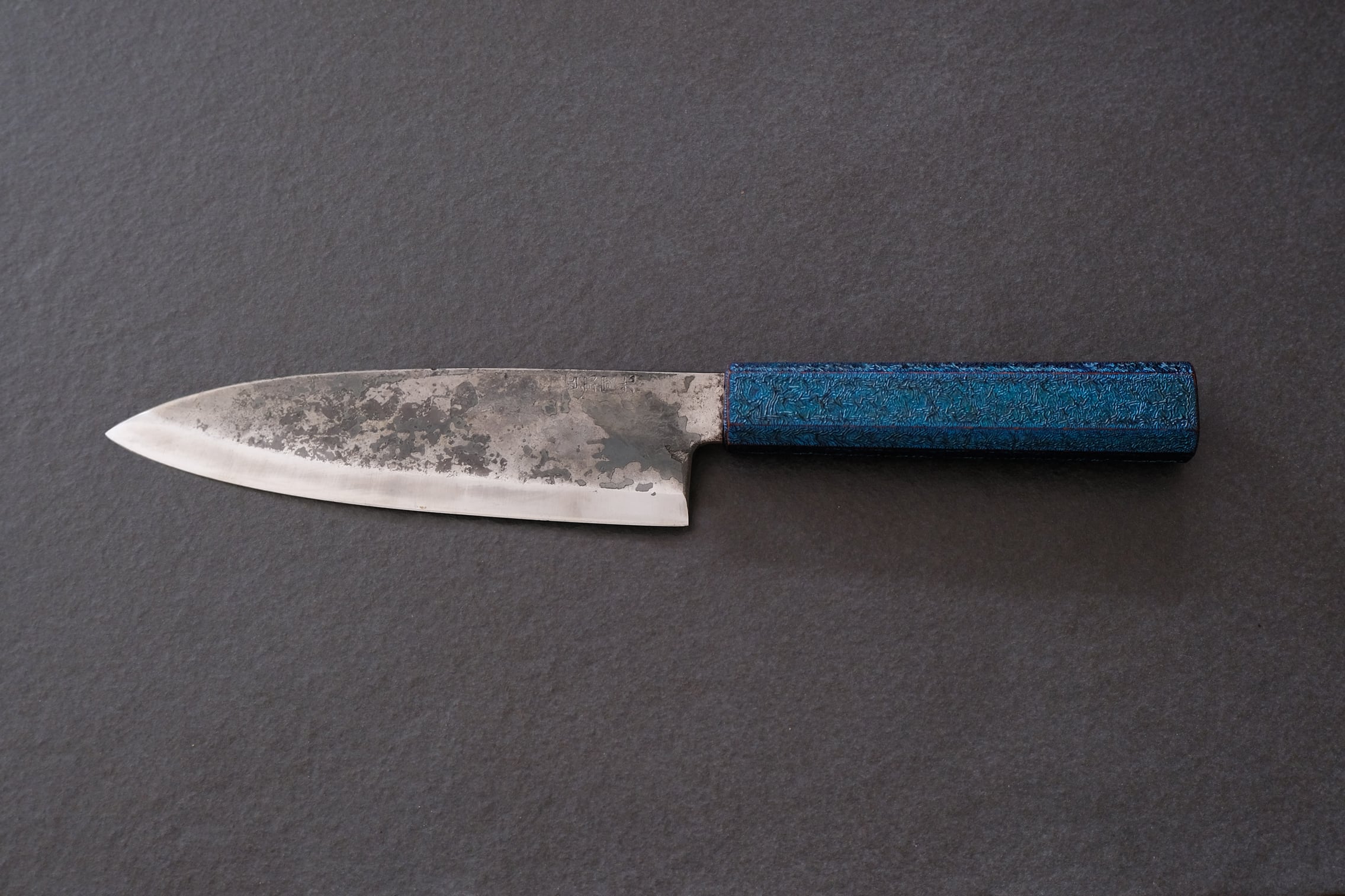 A blackened Santoku knife made using almost the same method as a Japanese sword